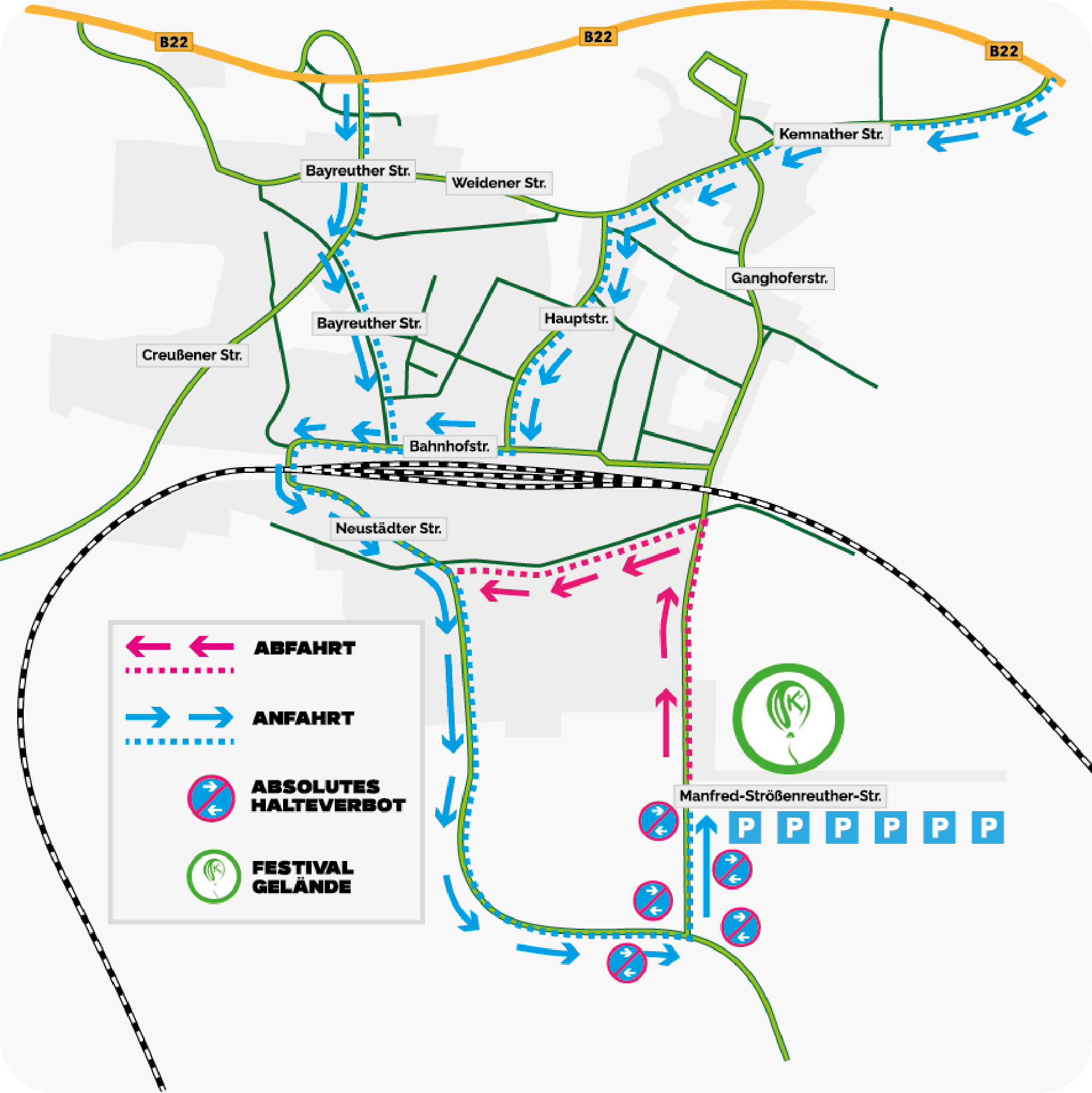 Der Bahnhof liegt nur ca. 5 Minuten vom Festival entfernt: